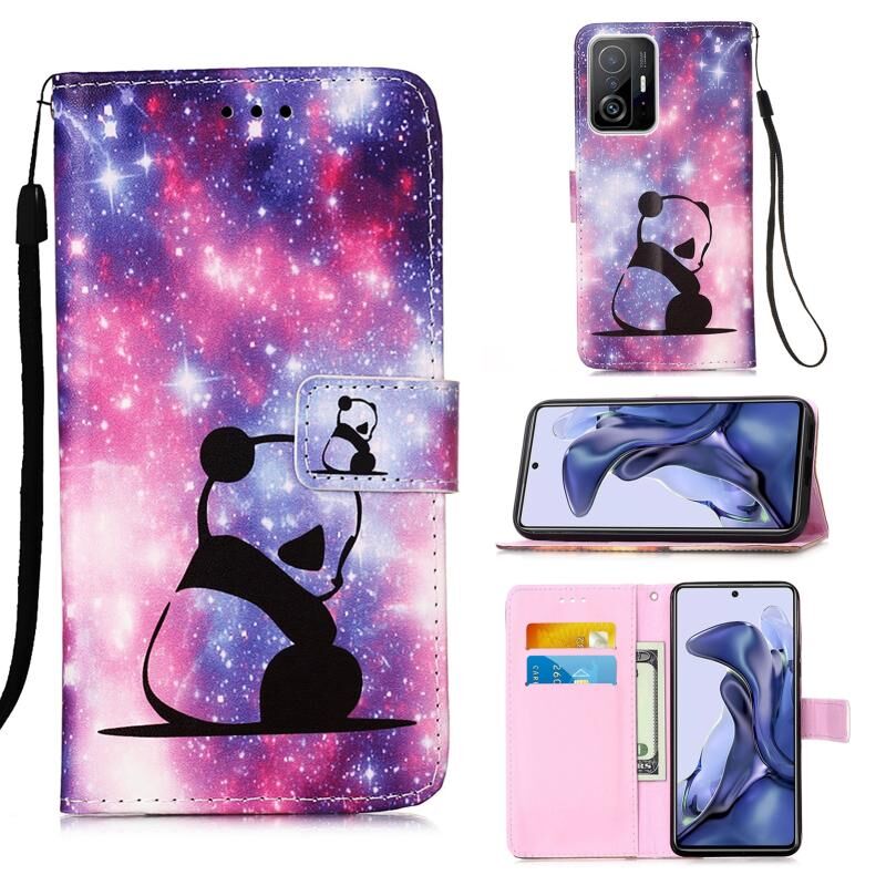 Θήκη δέρματος οριζόντιας αναδίπλωσης για Xiaomi Redmi 10 με σχέδιο πολύχρωμης ζωγραφικής, απλή ύφανση, με βάση στήριξης, θήκη για κάρτες, πορτοφόλι & κορδόνι (Μωρό Πάντα)