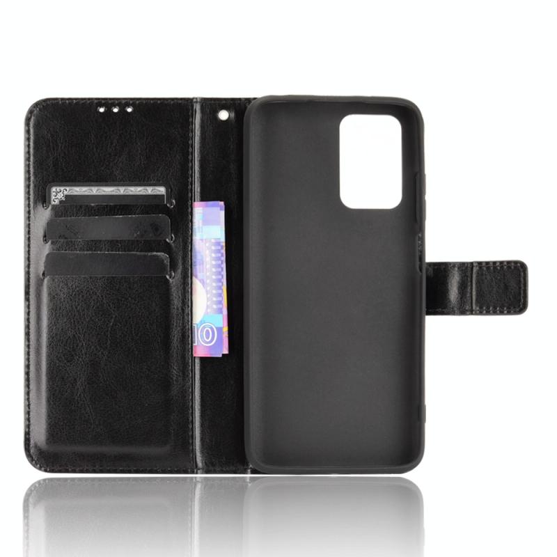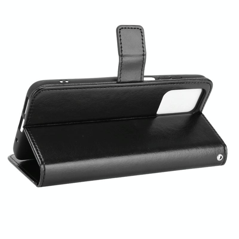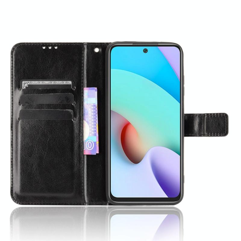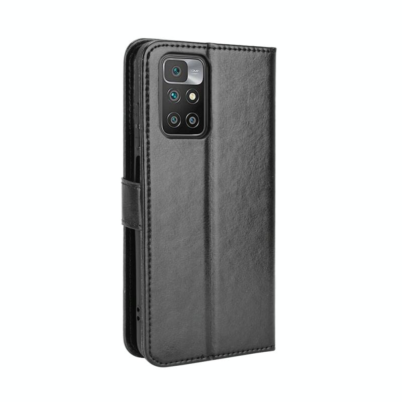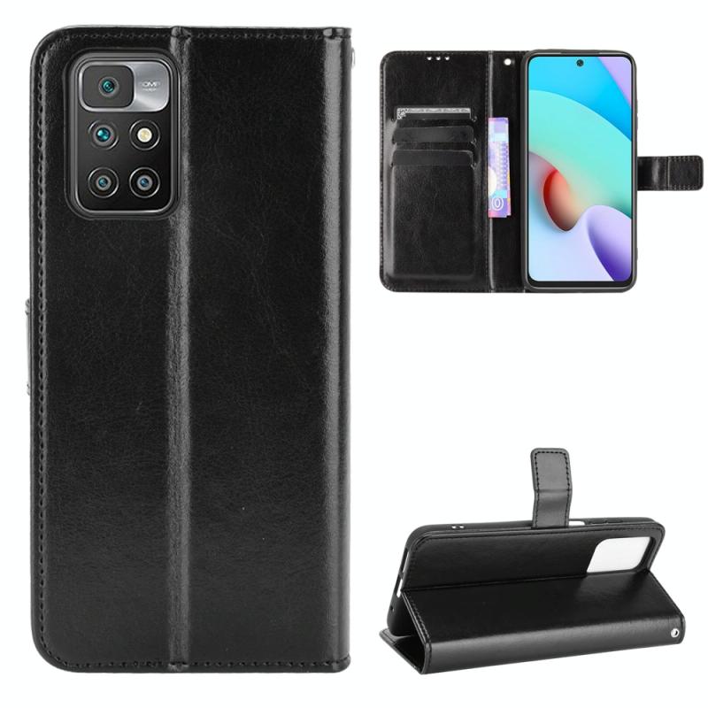 Θήκη δέρματος οριζόντιας αναδίπλωσης με υφή Crazy Horse για Xiaomi Redmi 10 με βάση στήριξης & θήκες καρτών & κορδόνι (Μαύρο)