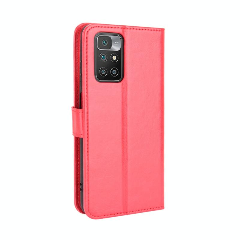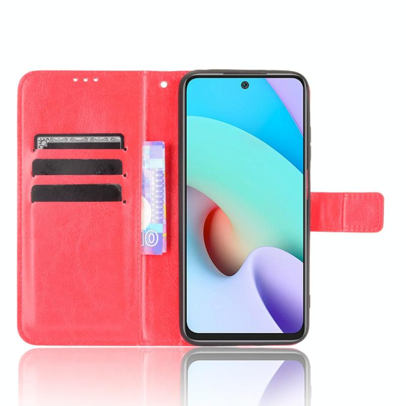 Θήκη δέρματος οριζόντιας αναδίπλωσης με υφή Crazy Horse για Xiaomi Redmi 10 με βάση στήριξης & θήκες καρτών & κορδόνι (Κόκκινο)