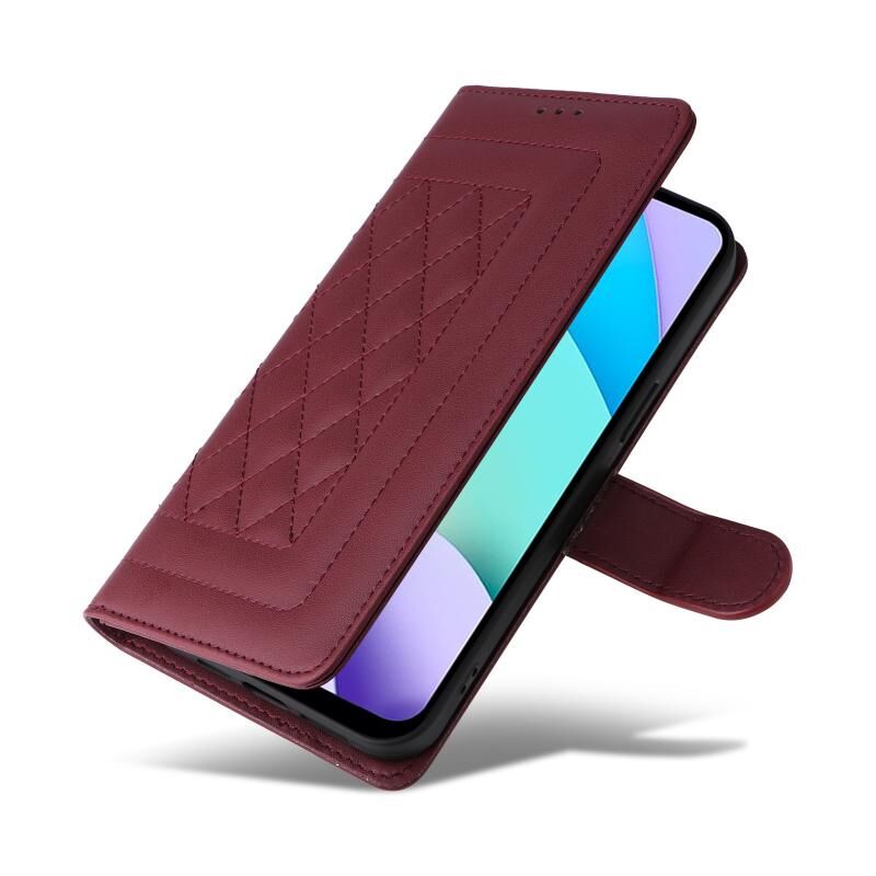 Για Xiaomi Redmi 10 Diamond Lattice δέρμα Flip υπόθεση τηλεφώνου (Κρασοκόκκινο)