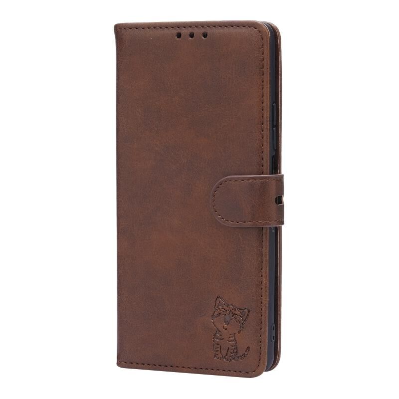 Για Xiaomi Redmi 10 ανάγλυφο Happy Cat μοτίβο οριζόντια Flip δερμάτινη θήκη με κάτοχο & υποδοχές για κάρτες & πορτοφόλι (καφέ)