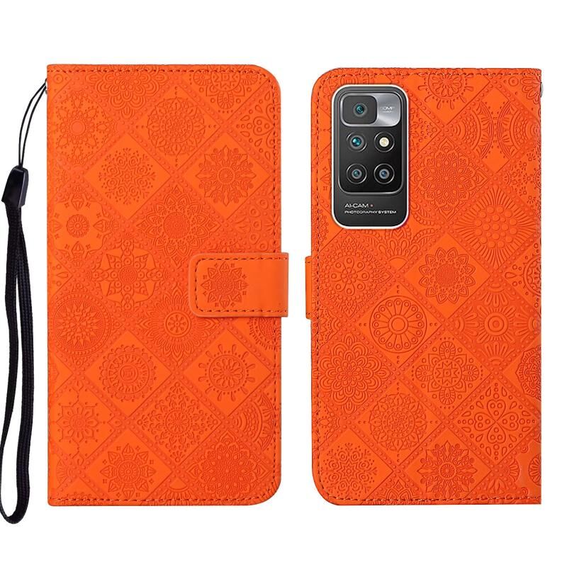 Θήκη τηλεφώνου δερμάτινη με ανάγλυφο σχέδιο εθνοτικού στυλ για Xiaomi Redmi 10 (Μωβ)