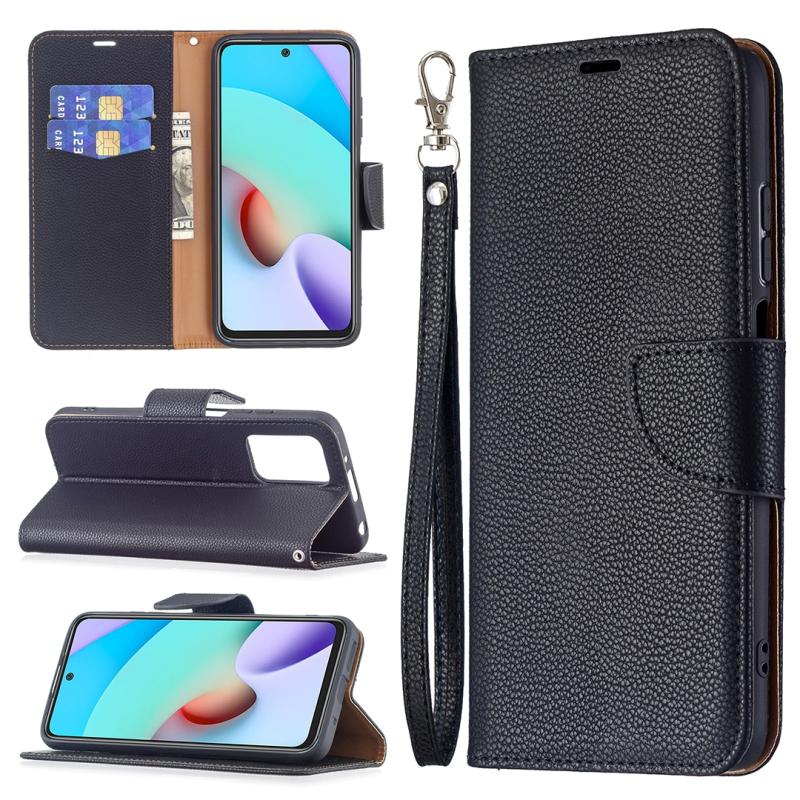 For Xiaomi Redmi 10 Litchi Texture Pure Color Horizontal Flip PU Leather Case with Holder & Card Slots & Wallet & Lanyard(Black)