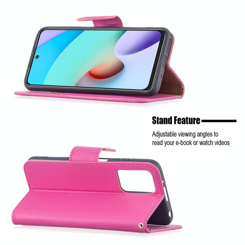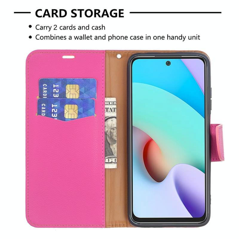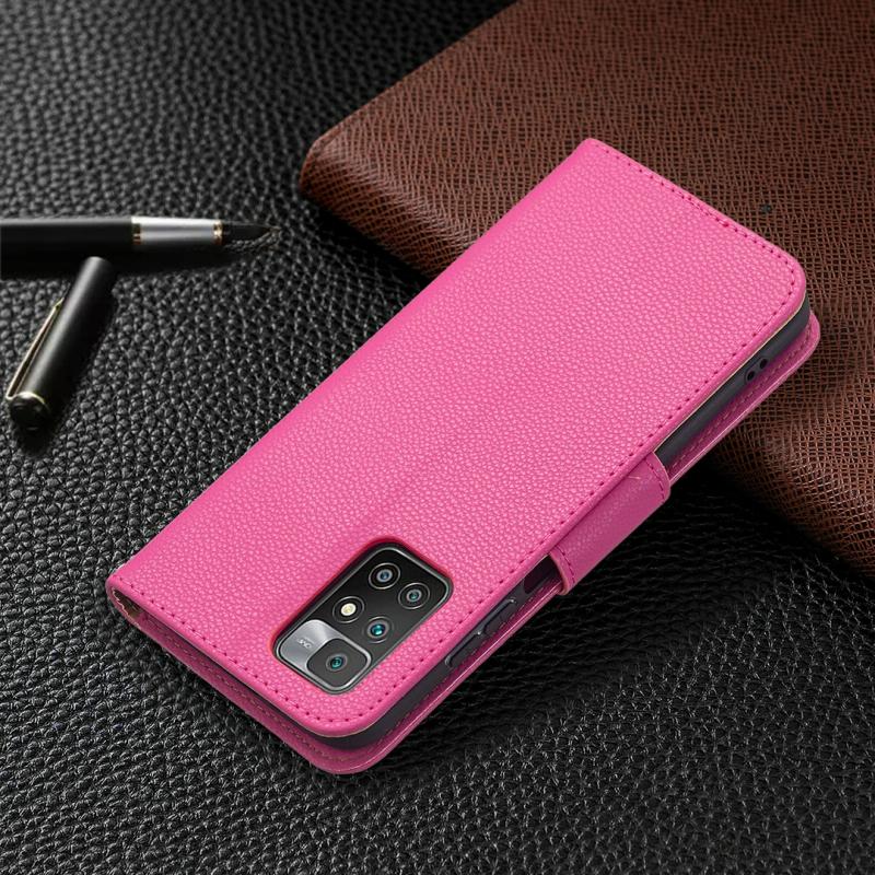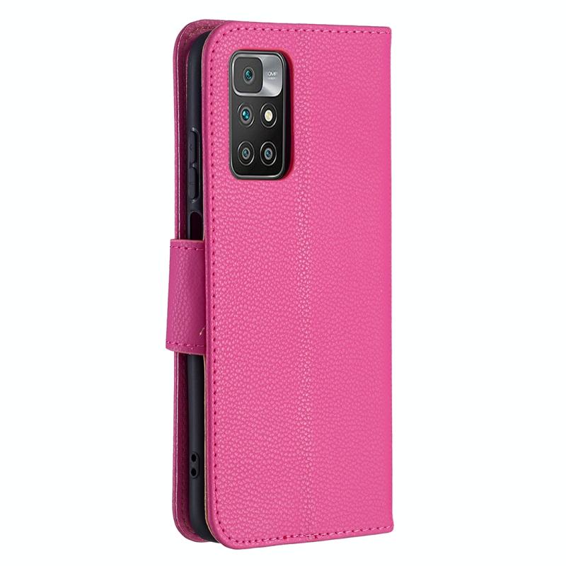 Θήκη για Xiaomi Redmi 10 με υφή Litchi, απλό χρώμα, οριζόντια αναδίπλωση, από δέρμα PU με βάση στήριξης & θήκες καρτών & πορτοφόλι & κορδόνι (Μαύρο)