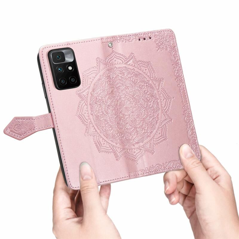 Για Xiaomi Redmi 10 Mandala ανάγλυφο μοτίβο οριζόντια Flip δερμάτινη θήκη με κάτοχο & υποδοχές για κάρτες & πορτοφόλι & κορδόνι (γκρι)