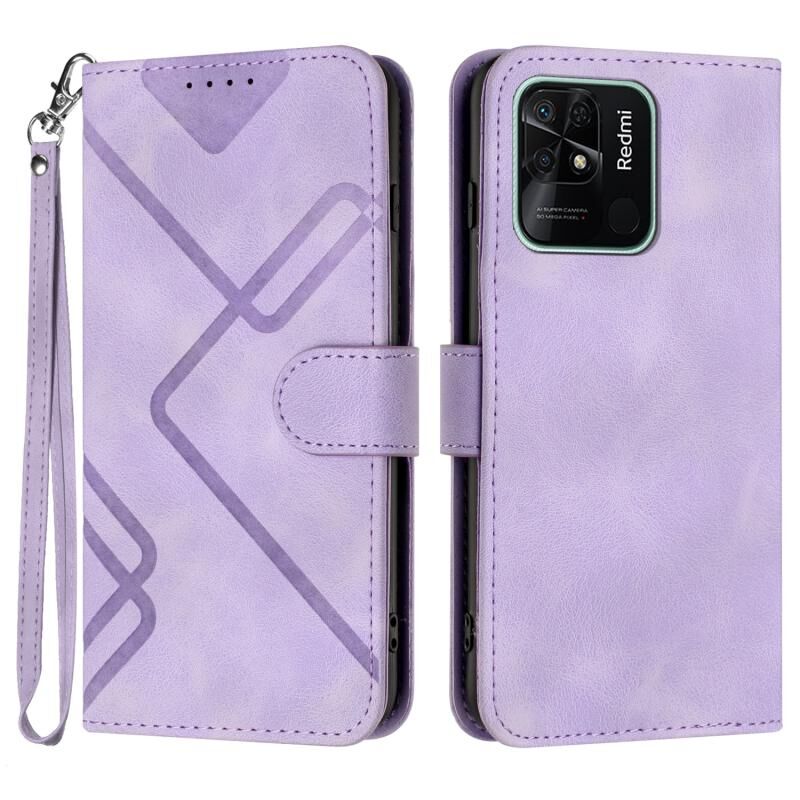 Για Xiaomi Redmi 10 Power Line μοτίβο δέρμα δέρμα αίσθηση τηλέφωνο υπόθεση (Light Purple)