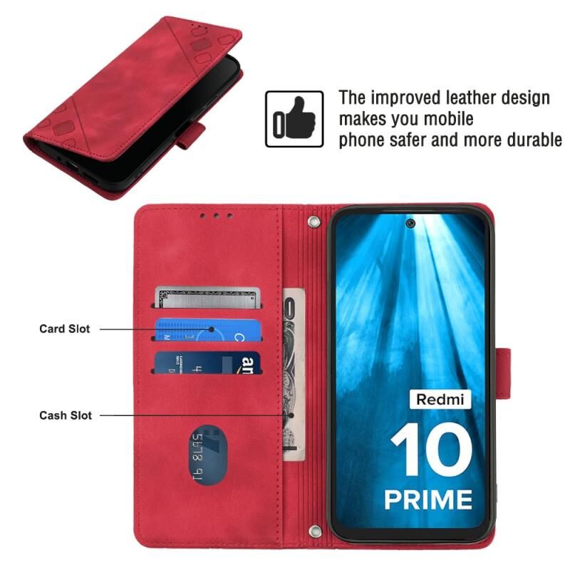 Για Xiaomi Redmi 10 Prime + 5G Skin-feel ανάγλυφη δερμάτινη θήκη τηλεφώνου (κόκκινο)