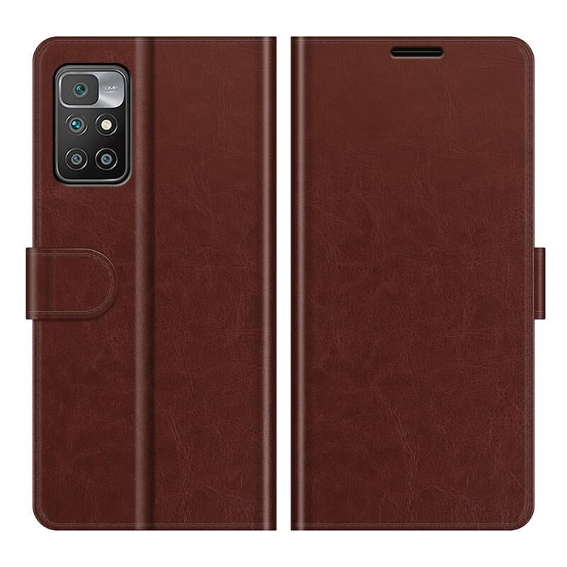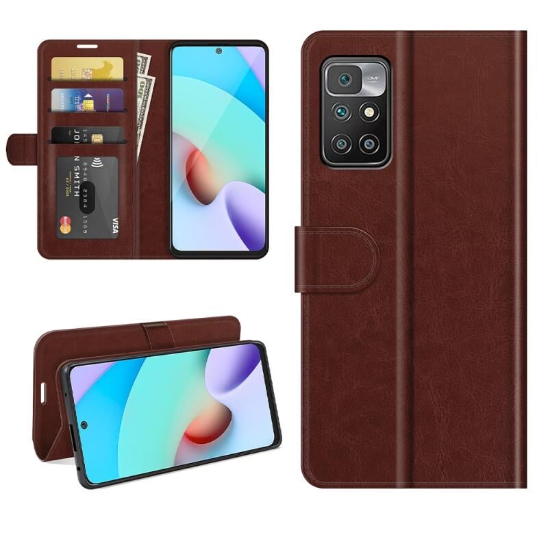 Για Xiaomi Redmi 10 R64 υφή ενιαία οριζόντια Flip προστατευτική θήκη με υποδοχή & υποδοχές καρτών & πορτοφόλι & πλαίσιο φωτογραφιών (καφέ)