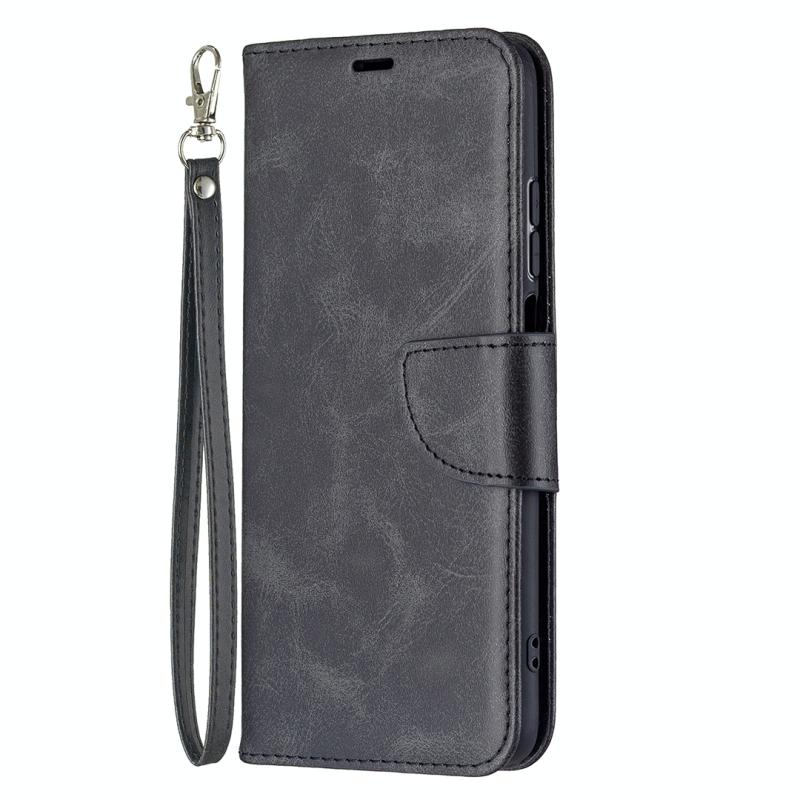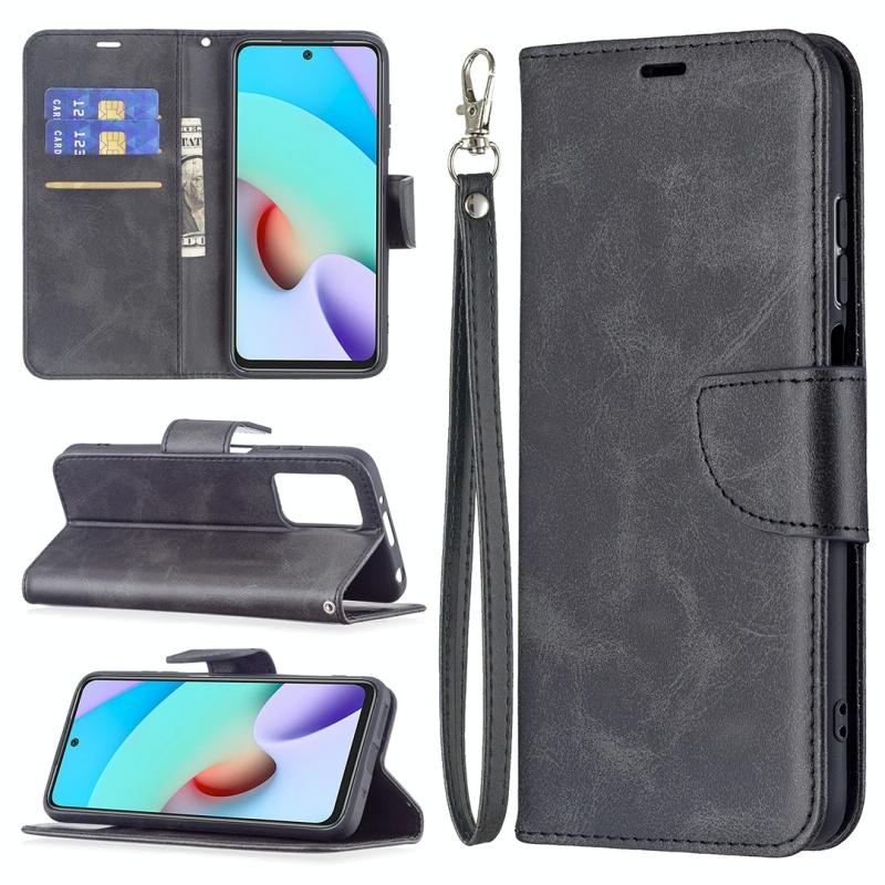 Θήκη για Xiaomi Redmi 10 με υφή retro δέρματος αρνιού, απλό χρώμα, οριζόντια αναδιπλούμενη από δερματίνη PU με βάση στήριξης, θήκες για κάρτες, πορτοφόλι & κορδόνι (Μαύρο)