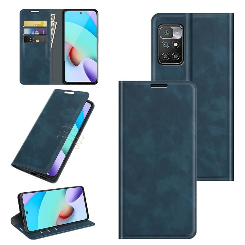 Για Xiaomi Redmi 10 Retro-skin Business Μαγνητική δερμάτινη θήκη αναρρόφησης με θήκη & υποδοχές καρτών & πορτοφόλι (σκούρο μπλε)