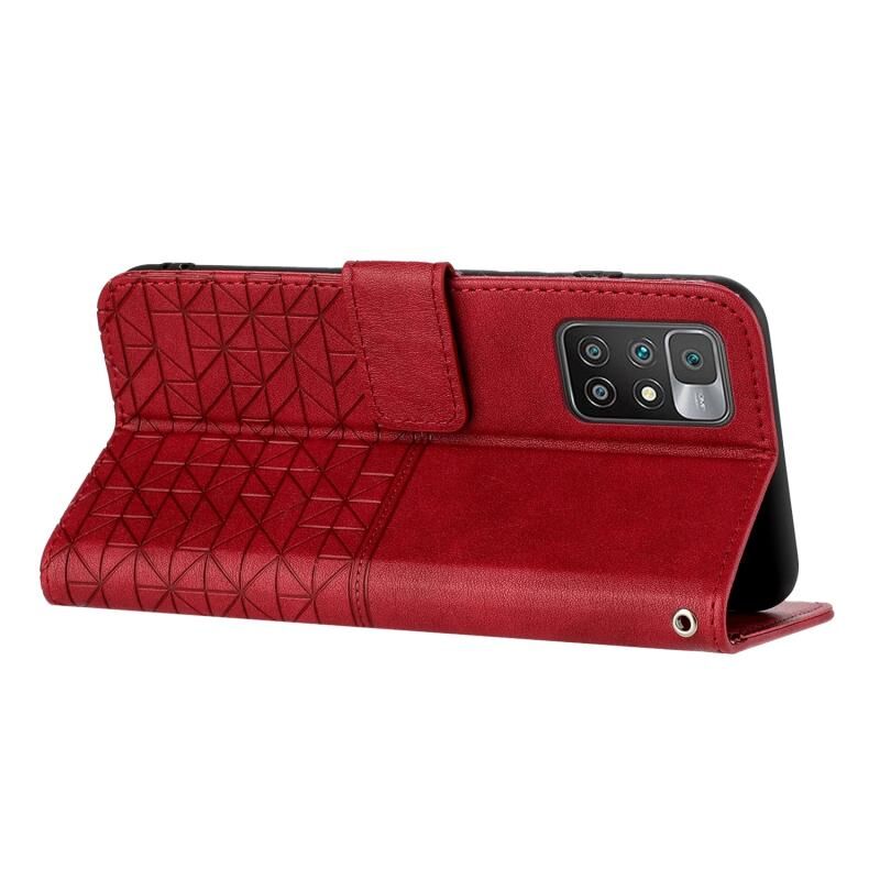 Θήκη δερμάτινη με κορδόνι για Xiaomi Redmi 10 με υφή ρόμβου (Κόκκινο)
