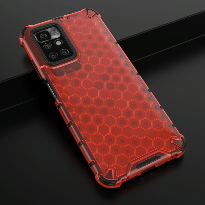 Θήκη για Xiaomi Redmi 10 ανθεκτική στις κρούσεις, από PC + TPU σε κυψελωτό σχέδιο (Κόκκινο)