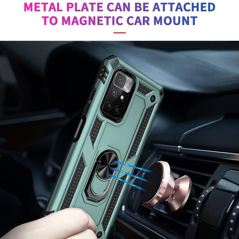 Για Xiaomi Redmi 10 Shockproof TPU + PC τηλέφωνο υπόθεση με 360 μοίρες περιστρεφόμενη κάτοχος (σκούρο πράσινο)