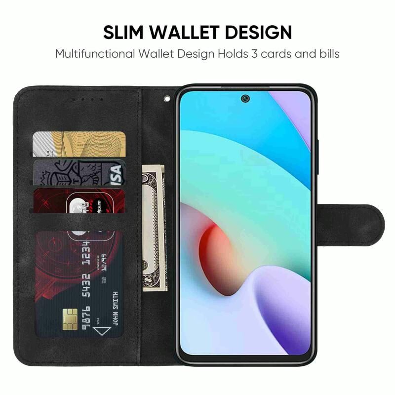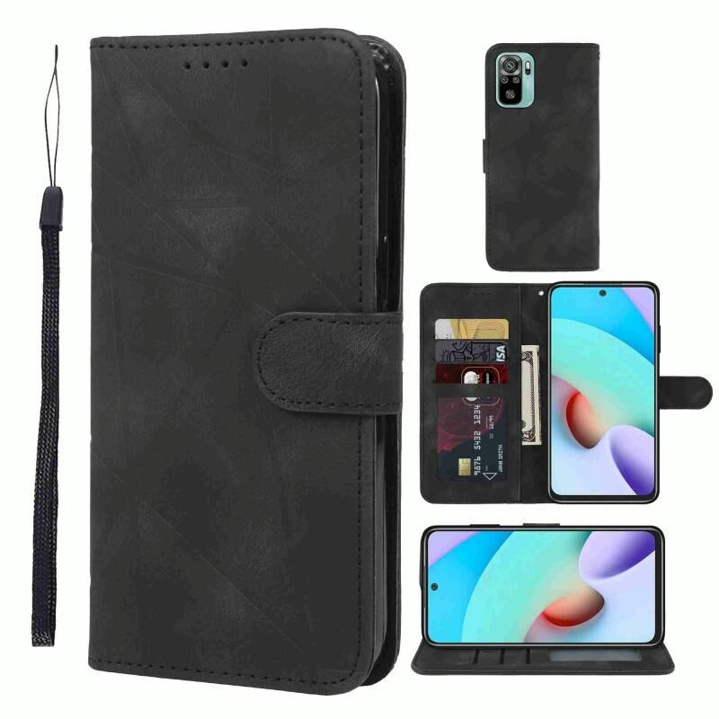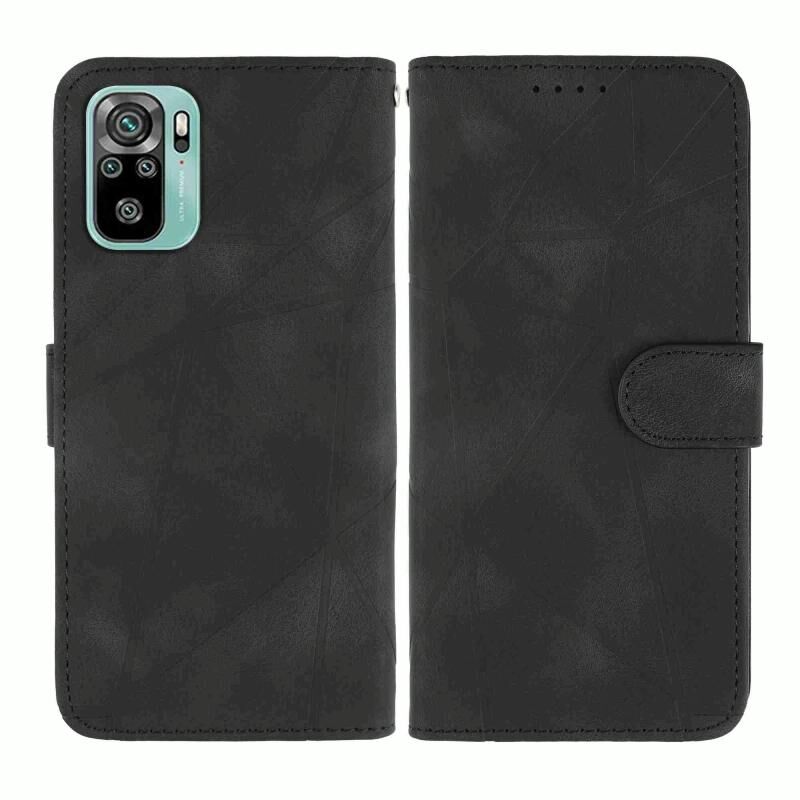 Για Xiaomi Redmi 10 Skin Feel γεωμετρικές γραμμές δερμάτινη θήκη τηλεφώνου (Μαύρο)