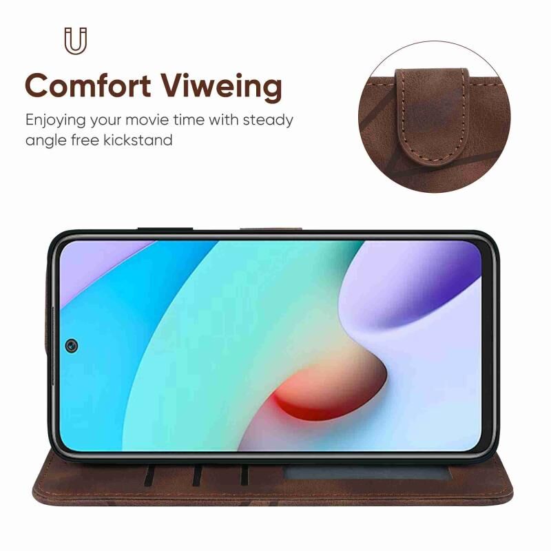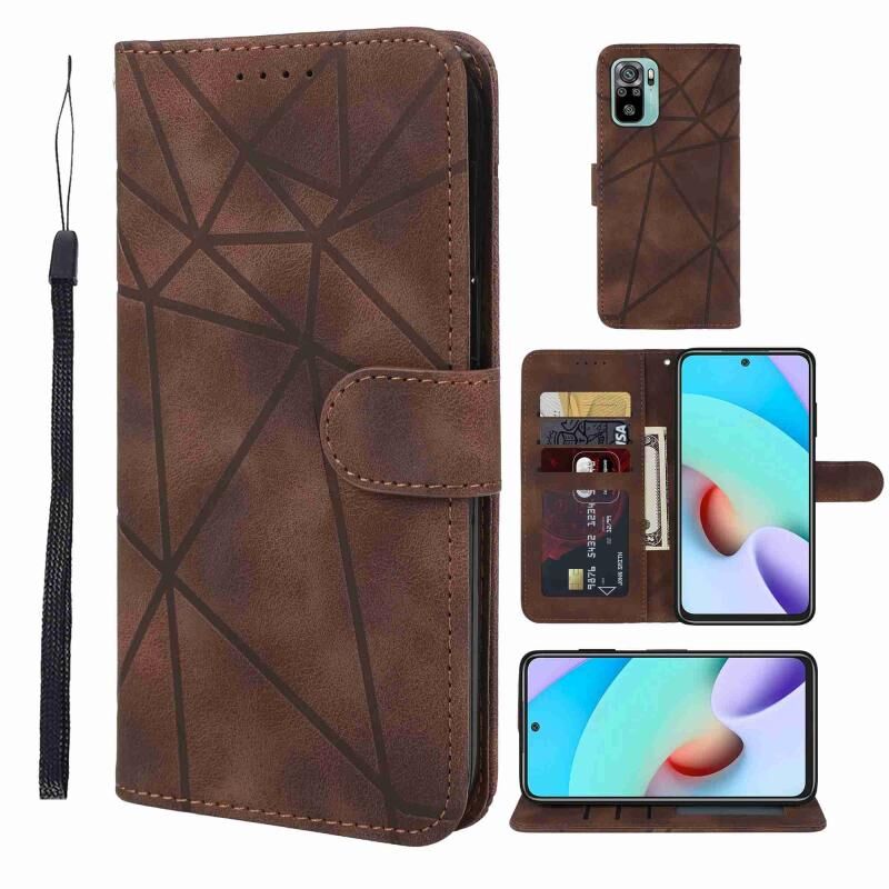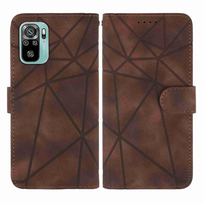 Για Xiaomi Redmi 10 δέρμα αίσθηση γεωμετρικές γραμμές δερμάτινη θήκη τηλεφώνου (καφέ)