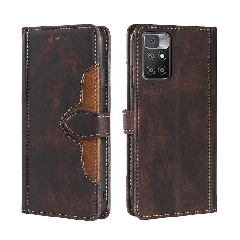 Για Xiaomi Redmi 10 Skin Feel Straw Hat μαγνητική πόρπη οριζόντια Flip PU δέρμα υπόθεση με κάτοχο & υποδοχές καρτών & πορτοφόλι (Καφέ)