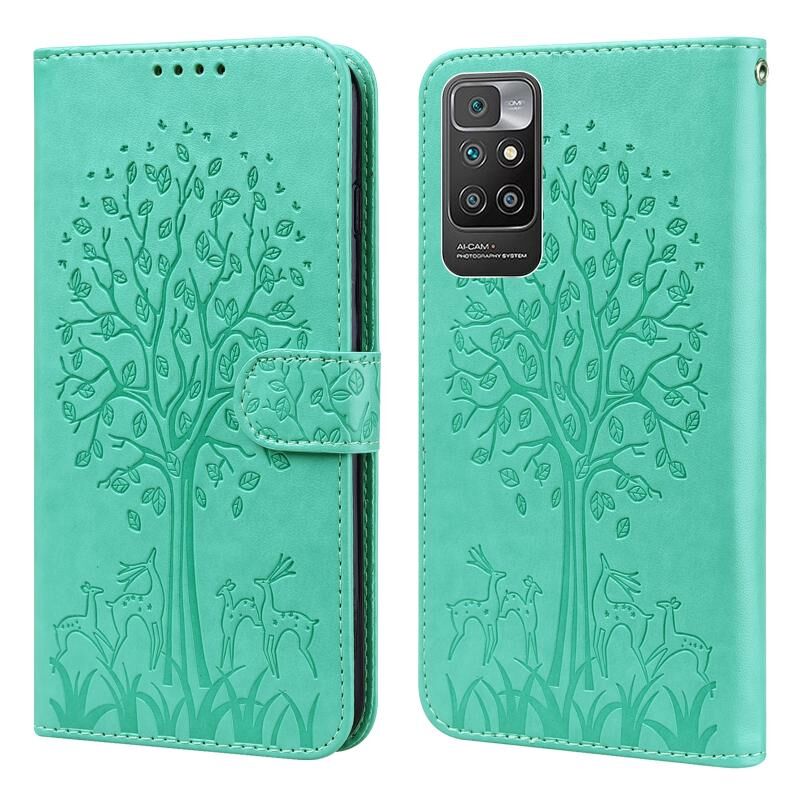 Θήκη τηλεφώνου από δέρμα με σχέδιο δέντρου και ελαφιού για Xiaomi Redmi 10 (Μωβ)
