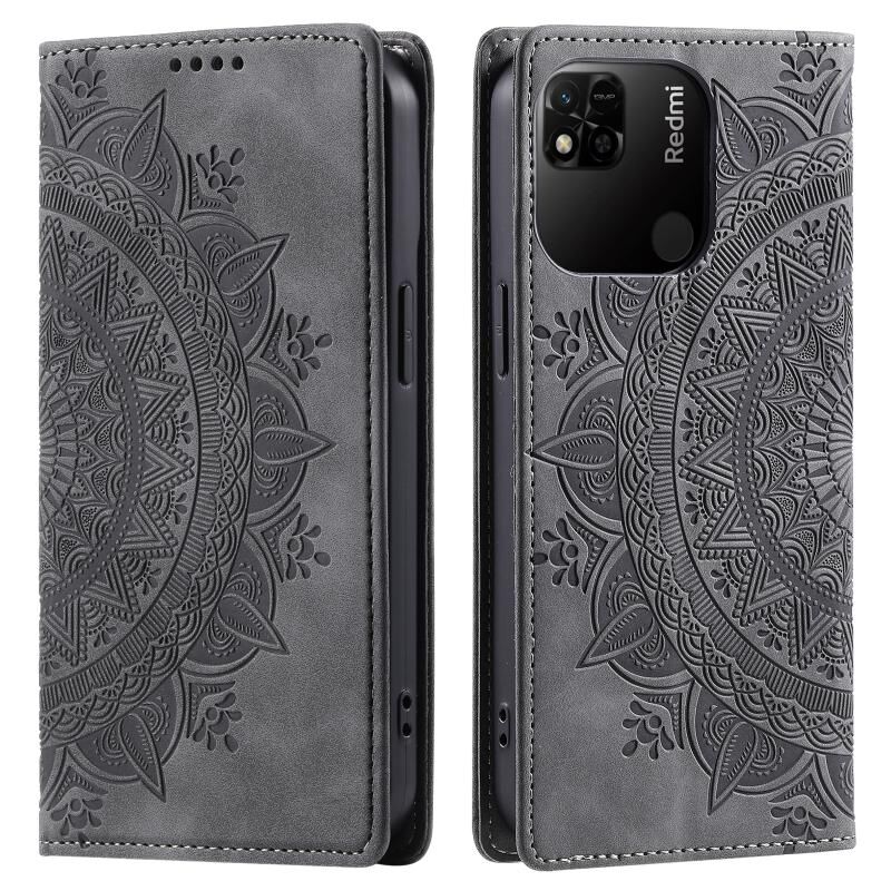 Για Xiaomi Redmi 10A 4G Global / Poco C55 Totem ανάγλυφη μαγνητική δερμάτινη θήκη τηλεφώνου (γκρι)