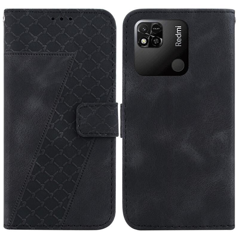 Για Xiaomi Redmi 10A 7-shaped ανάγλυφη δερμάτινη θήκη τηλεφώνου (μαύρο)