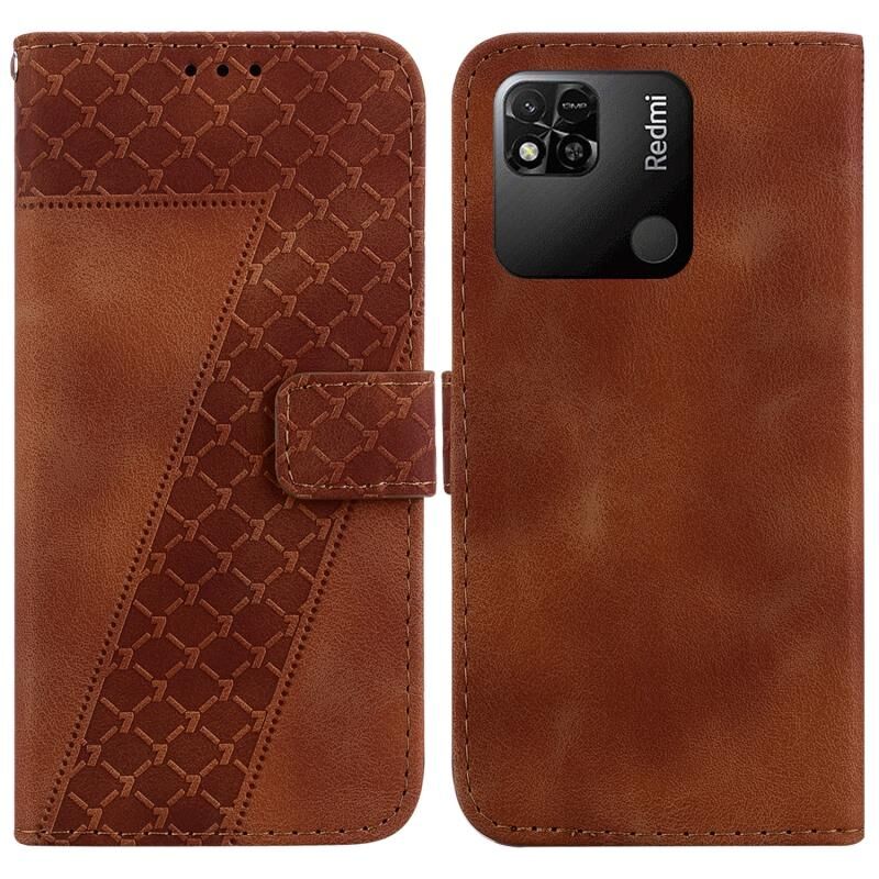 Για Xiaomi Redmi 10A 7-σχήμα ανάγλυφη δερμάτινη θήκη τηλεφώνου (καφέ)