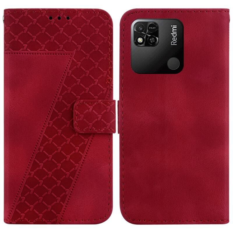 Για Xiaomi Redmi 10A 7-σχήμα ανάγλυφη δερμάτινη θήκη τηλεφώνου (κόκκινο)