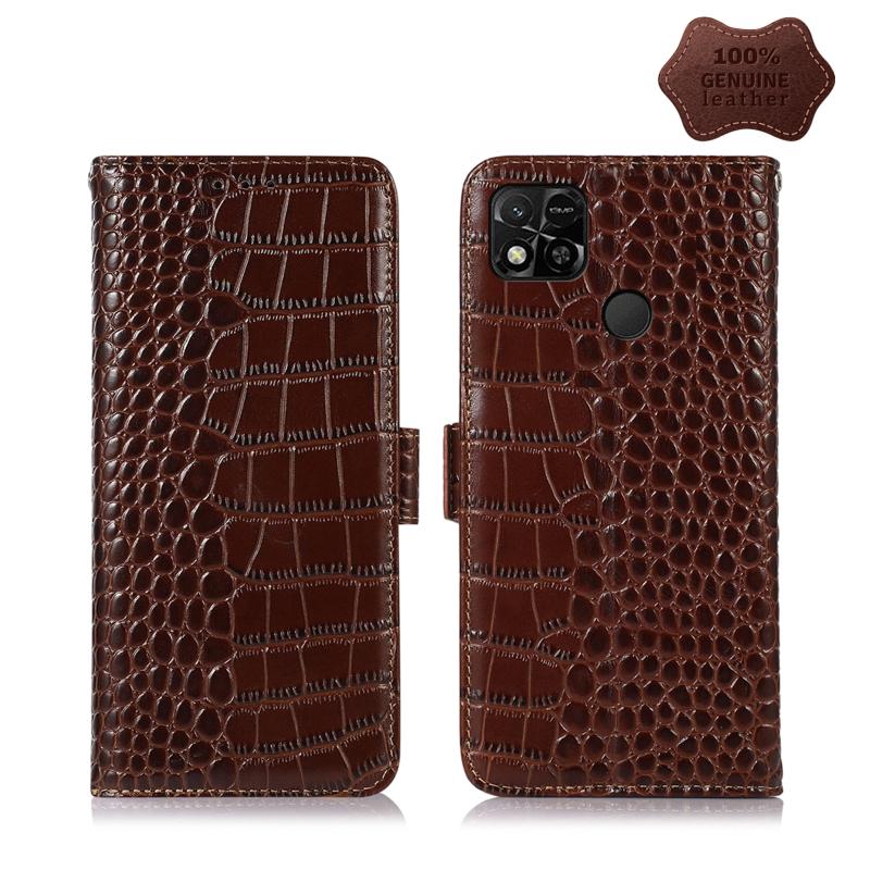 Θήκη δέρματος Xiaomi Redmi 10A / 9C από γνήσιο δέρμα κροκόδειλου (Καφέ)