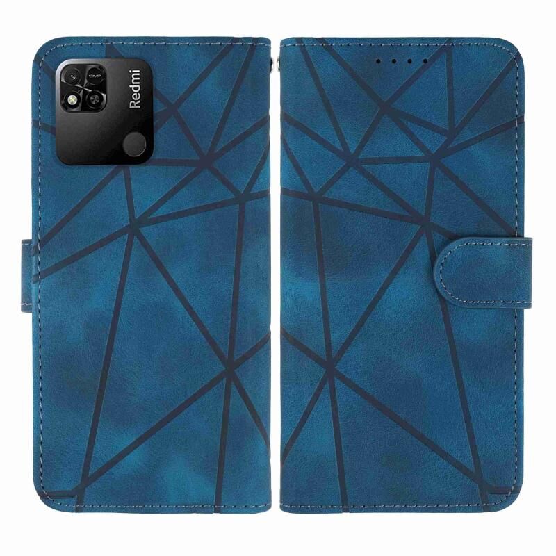 Για Xiaomi Redmi 10A / 9C δέρμα αίσθηση γεωμετρικές γραμμές δερμάτινη θήκη τηλεφώνου (μπλε)