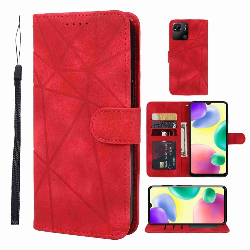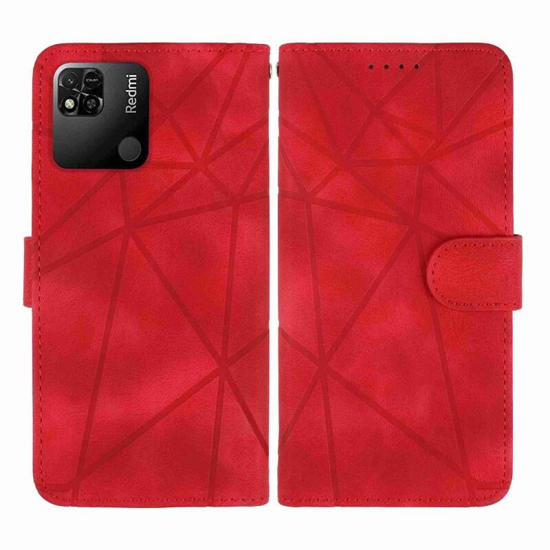 Για Xiaomi Redmi 10A / 9C δέρμα αίσθηση γεωμετρικές γραμμές δερμάτινη θήκη τηλεφώνου (κόκκινο)