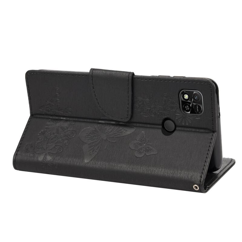 Θήκη τηλεφώνου δερμάτινη ανάγλυφη με σχέδιο πεταλούδας για Xiaomi Redmi 10A (Μαύρο)