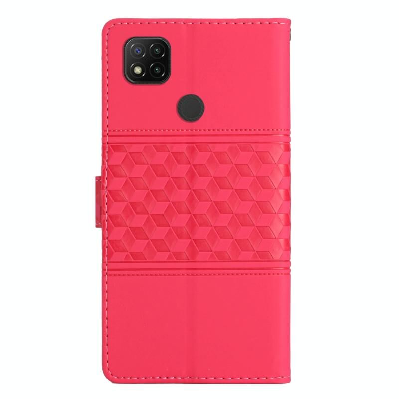 Για Xiaomi Redmi 10A Diamond ανάγλυφο δέρμα αίσθηση δερμάτινη θήκη τηλεφώνου με κορδόνι (κόκκινο)