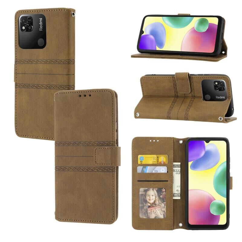 Για Xiaomi Redmi 10A ανάγλυφο ριγέ μαγνητική πόρπη οριζόντια Flip τηλέφωνο δερμάτινη θήκη (καφέ)