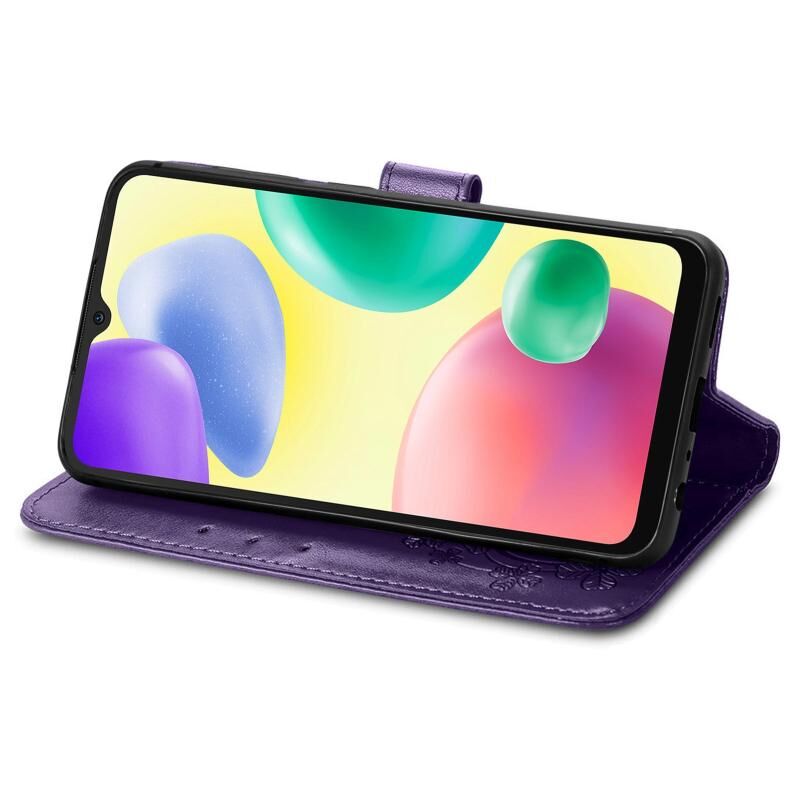 Για Xiaomi Redmi 10A τετράφυλλο κούμπωμα ανάγλυφο πόρπη δερμάτινη θήκη τηλεφώνου (Μωβ)