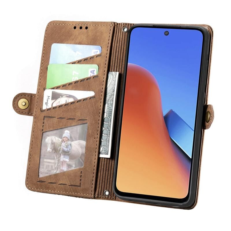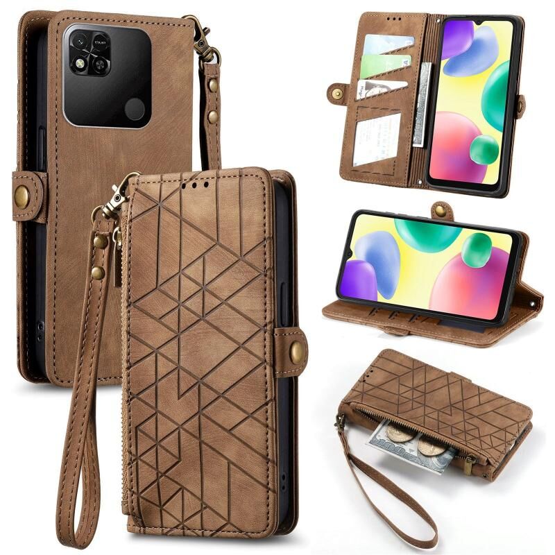Για Xiaomi Redmi 10A γεωμετρική φερμουάρ πορτοφόλι πλευρά πόρπη δερμάτινη θήκη τηλεφώνου (καφέ)