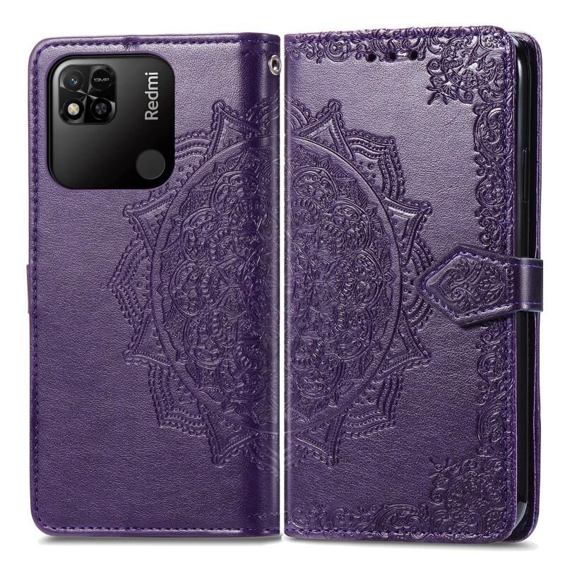 Για Xiaomi Redmi 10A Mandala λουλούδι ανάγλυφο δερμάτινη θήκη τηλεφώνου (μωβ)