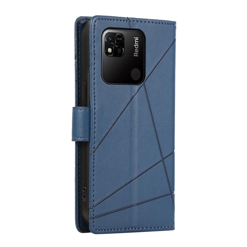 For Xiaomi Redmi 10A PU Genuine Leather Texture Embossed Line Phone Case(Blue)