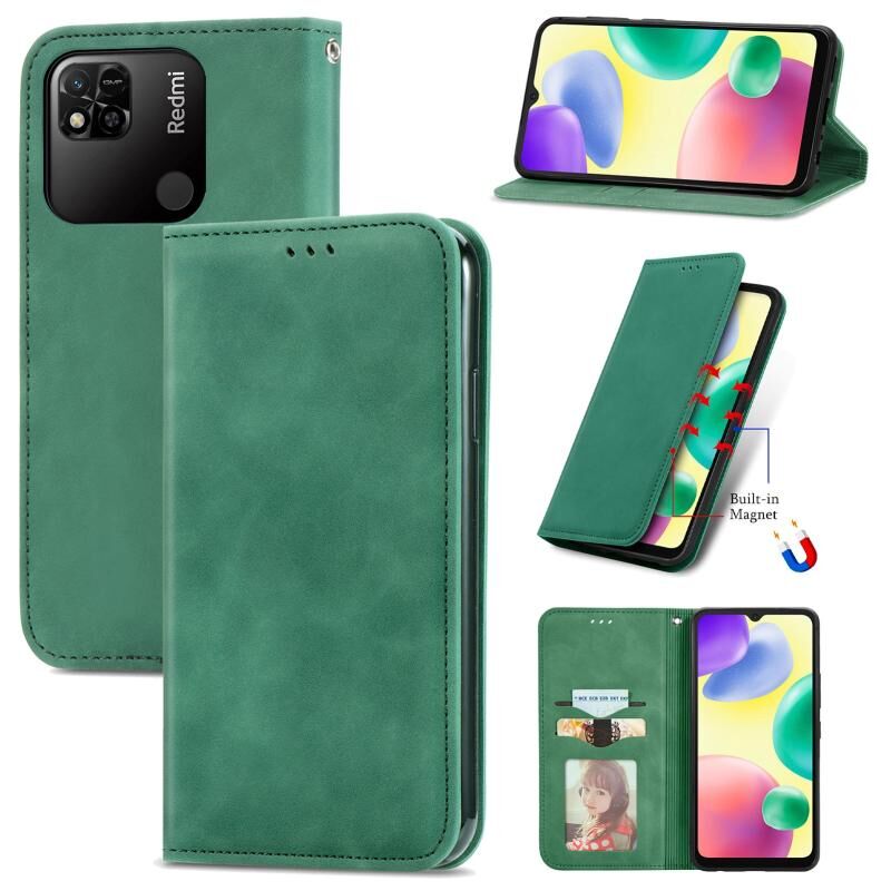 Για Xiaomi Redmi 10A Ρετρό δέρμα αίσθηση μαγνητικό δέρμα τηλέφωνο υπόθεση (πράσινο)