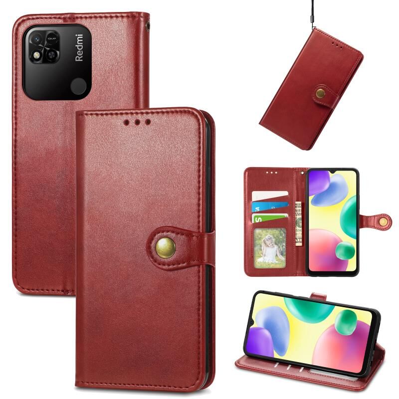Για Xiaomi Redmi 10A Ρετρό στερεό χρώμα πόρπη δερμάτινη θήκη τηλεφώνου (Κόκκινο)