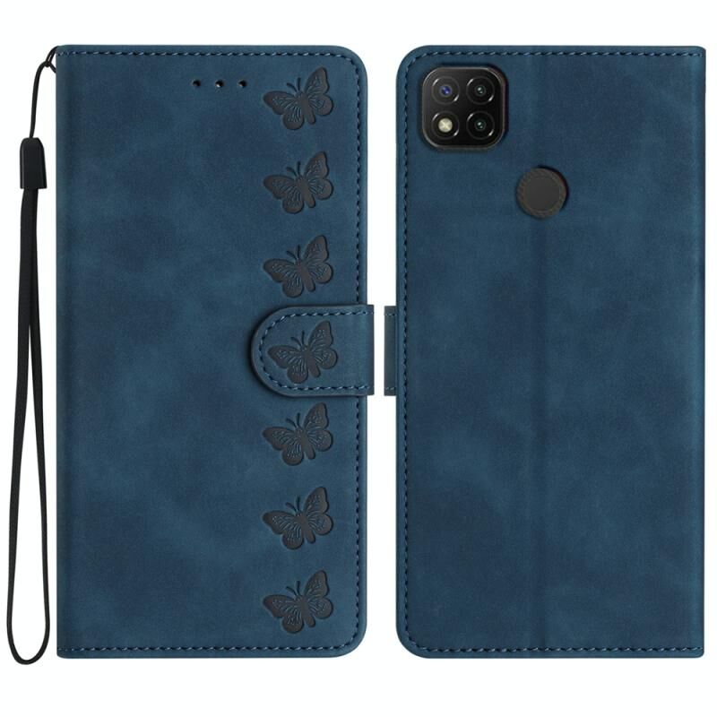 Για Xiaomi Redmi 10A Επτά πεταλούδες ανάγλυφη δερμάτινη θήκη τηλεφώνου (μπλε)