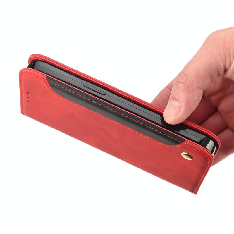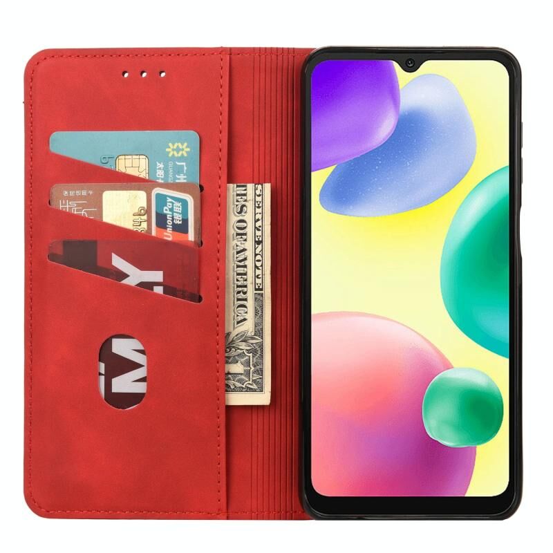 Θήκη δερμάτινη για Xiaomi Redmi 10A με αίσθηση δέρματος και ραφές. (Κόκκινο)