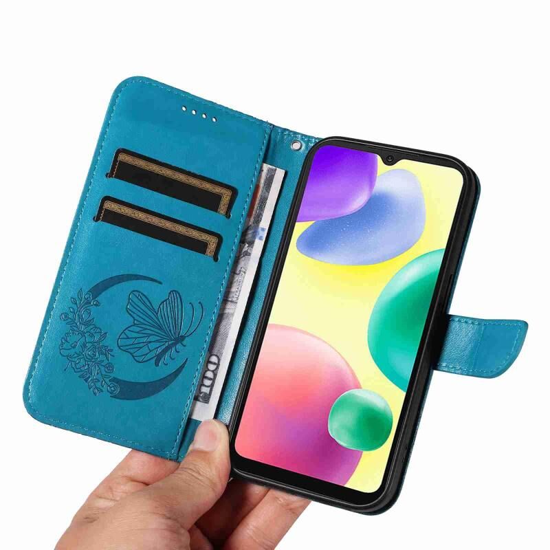 Θήκη τηλεφώνου δερμάτινη με ανάγλυφο σχέδιο πεταλούδας Swallowtail για Xiaomi Redmi 10A (Μπλε)