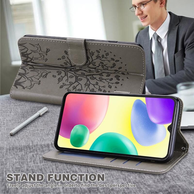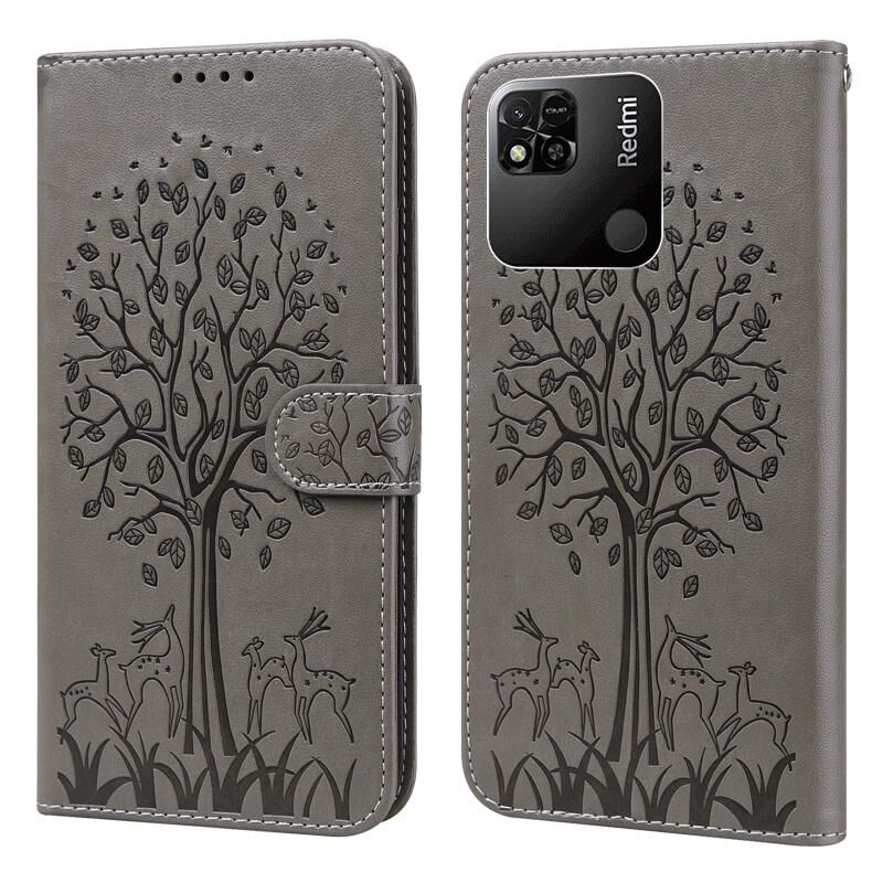 Θήκη τηλεφώνου από δέρμα με σχέδιο δέντρου και ελαφιού, τύπου flip, για Xiaomi Redmi 10A (Μωβ)