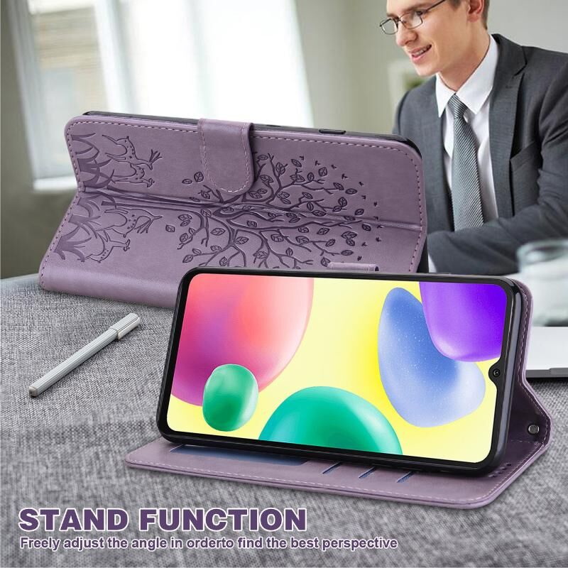 Θήκη τηλεφώνου από δέρμα με σχέδιο δέντρου και ελαφιού, τύπου flip, για Xiaomi Redmi 10A (Μωβ)