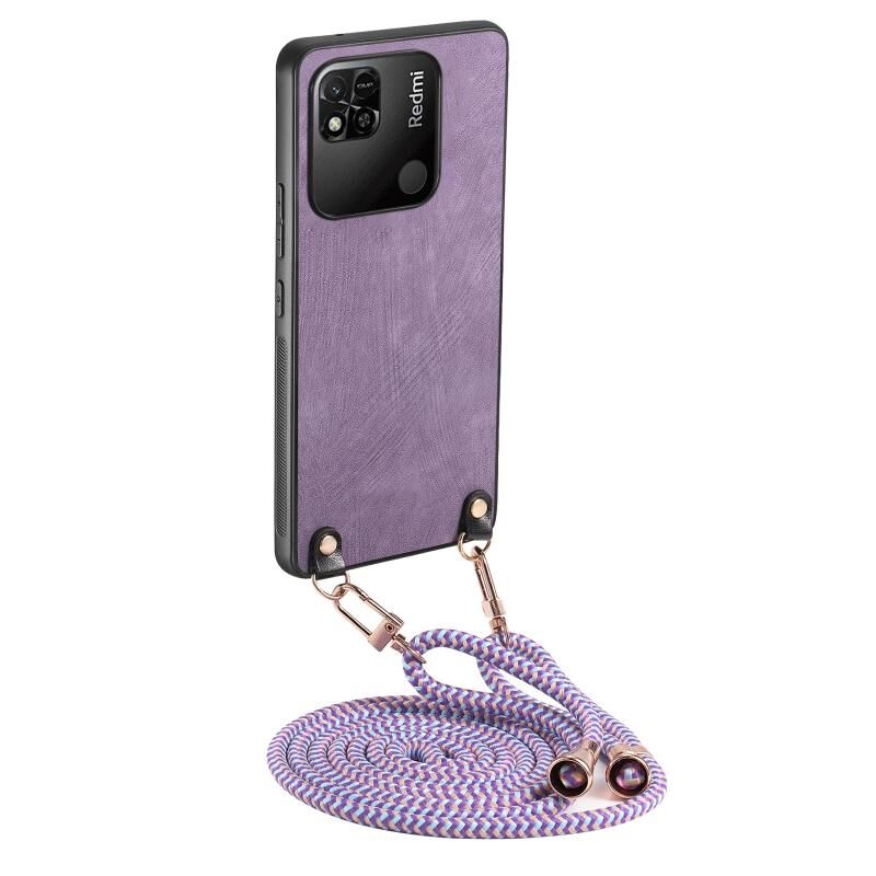 Για Xiaomi Redmi 10A εκλεκτής ποιότητας δέρμα PC πίσω κάλυψη υπόθεση τηλεφώνου με λουράκι σταυρού (μωβ)