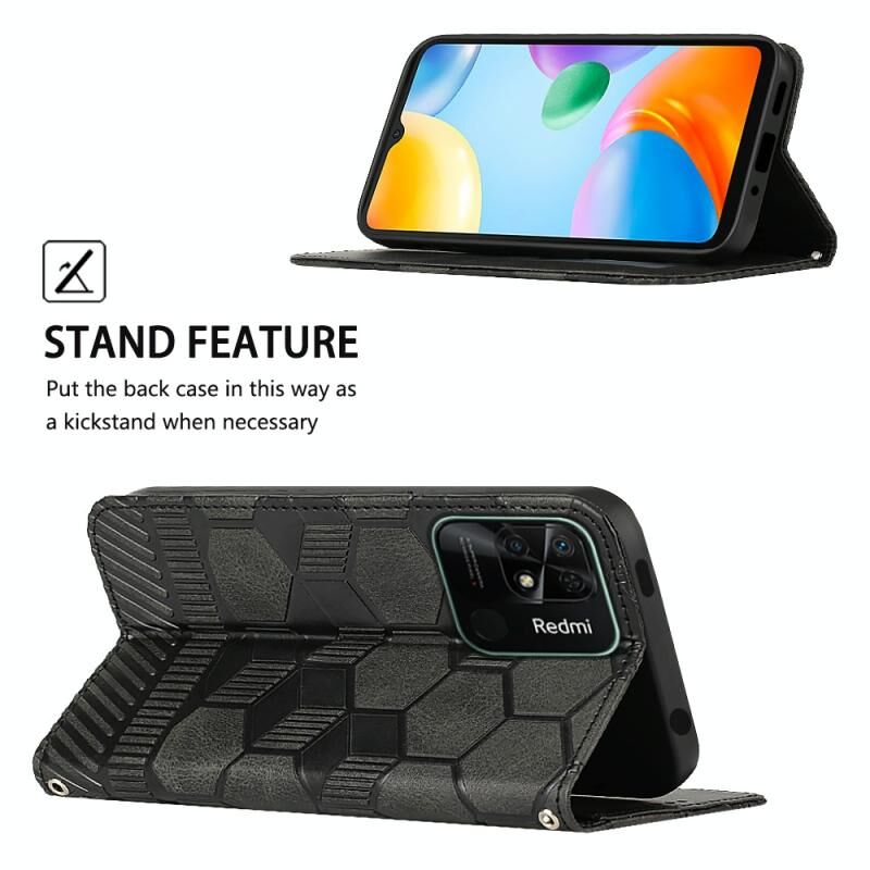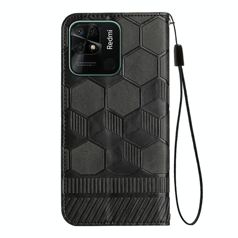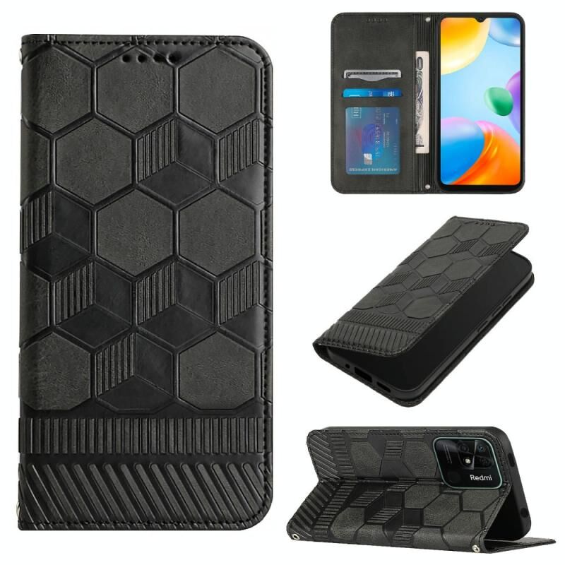 Για Xiaomi Redmi 10C / 10 India Θήκη Δερμάτινη Μαγνητική Flip με Υφή Ποδοσφαίρου (Μαύρο)