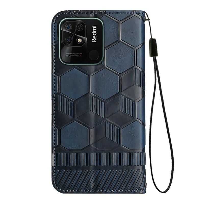 Για Xiaomi Redmi 10C / 10 India Θήκη Δερμάτινη Μαγνητική Flip με Υφή Ποδοσφαίρου (Σκούρο Μπλε)