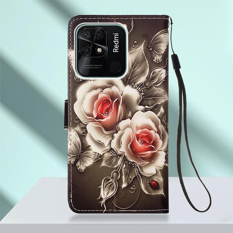 Θήκη τηλεφώνου από δέρμα με απλή ύφανση και πολύχρωμη σχεδίαση για Xiaomi Redmi 10C 4G Global/10 India (Ροζ)