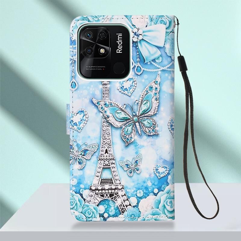 Θήκη τηλεφώνου από δέρμα με απλή ύφανση και πολύχρωμη σχεδίαση για Xiaomi Redmi 10C 4G Global/10 India (Πύργος Πεταλούδας)