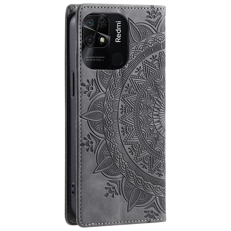 Για Xiaomi Redmi 10C 4G Global / 10 Ινδία Totem ανάγλυφη μαγνητική δερμάτινη θήκη τηλεφώνου (Γκρι)