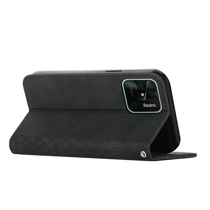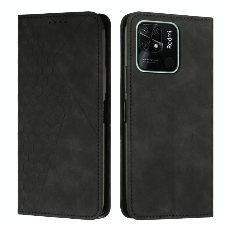 Για Xiaomi Redmi 10C 4G / Redmi 10 India Δερμάτινη Μαγνητική Θήκη Diamond Splicing (Μαύρο)