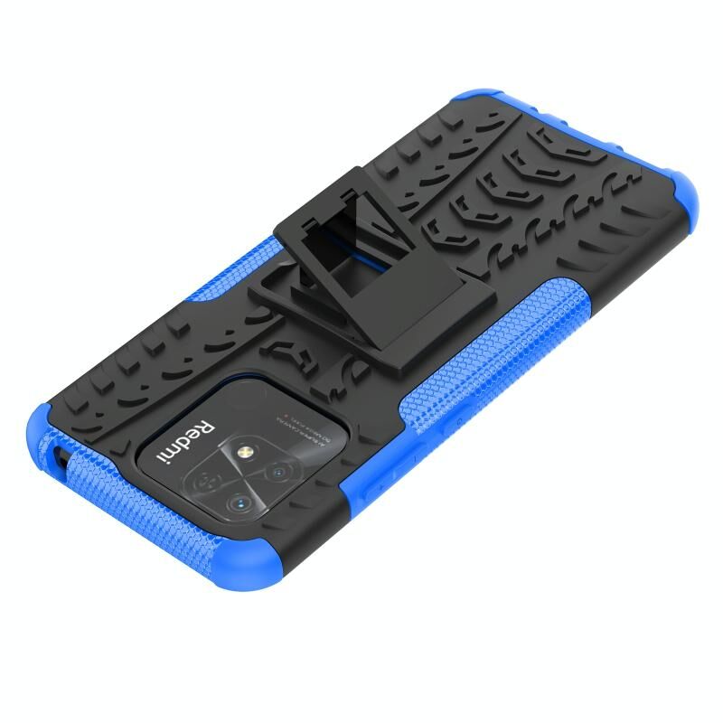 Για Xiaomi Redmi 10C 4G Global Tire υφή TPU + PC τηλέφωνο υπόθεση με κάτοχο (μπλε)